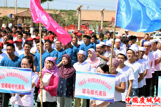 本届少数民族群众体育运动会为庆城首届,由庆城县委、县政府主办,桐川镇人民政府承办,全县以驿马镇、桐川镇党委辖属的党支部为单位,共组建16个代表队420余人参赛,其中驿马镇东滩村和桐川镇党崾岘村回族运动员30多人。