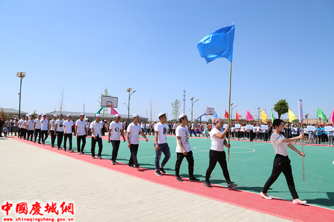 5月31日,在庆城县桐川镇党崾岘村文化广场,一个个戴着白色“礼拜帽”和围着彩色“搭盖头”的回族同胞在夏日的阳光里显得格外耀眼,庆城县第一届少数民族群众体育运动会在这里隆重开幕。