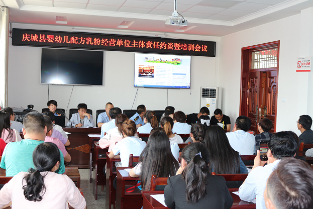 庆城食药监所召开城区保健食品、婴幼儿配方乳粉经营企业主体责任集体约谈暨培训会议